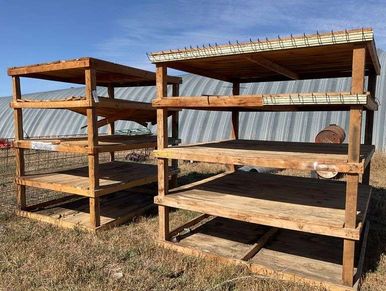 2 WOODEN SHOP STORAGE SHELVES